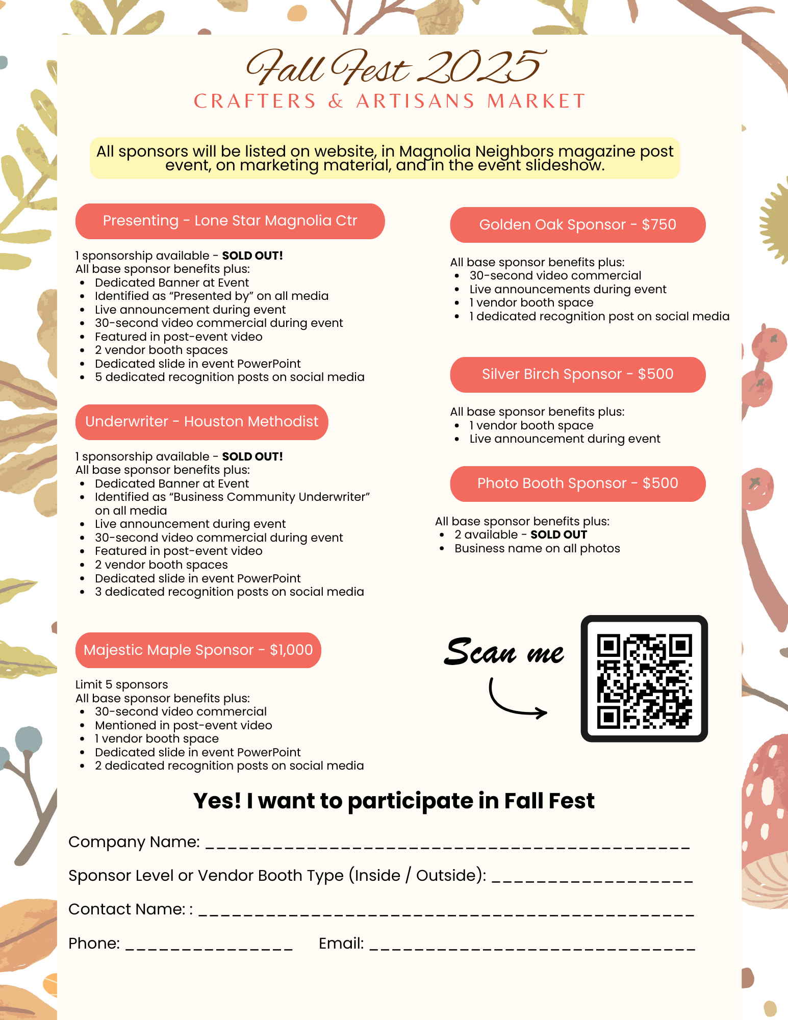 For information on becoming a sponsor or vendor, you can contact our Chamber office at 281-356-1488 or simply click on the links below.